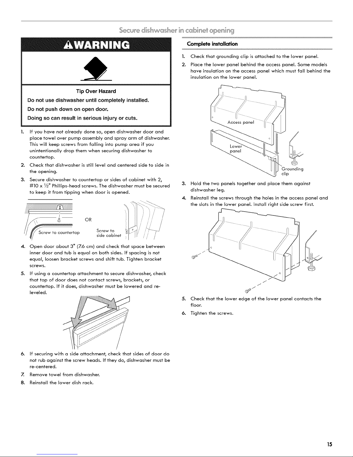 3. Assuiettir le lave-vaisselle au plan de travail ou aux c6tSs des