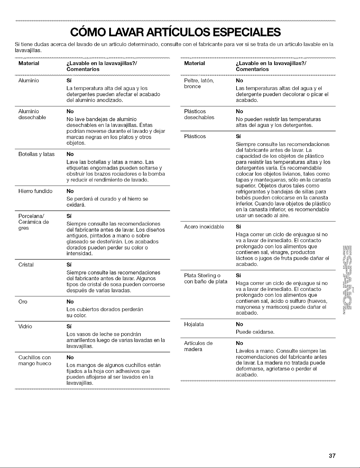 le lavage? Les articles d'aluminium jetables peuvent se briser dans le lave-vaisselle et causer des marques. Laver ces articles a la main. Pour eliminer les marques d'aluminium, employer un produit de nettoyage moyennement abrasif.