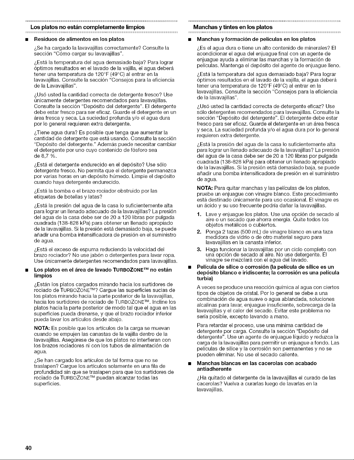 Pour ralentir ce processus, utiliser la quantite minimale de detergent par charge. Consulter la section "Distributeur de detergent". Utiliser un agent de ringage liquide, et ne pas trop charger le lave-vaisselle pour permettre un ringage a fond. II