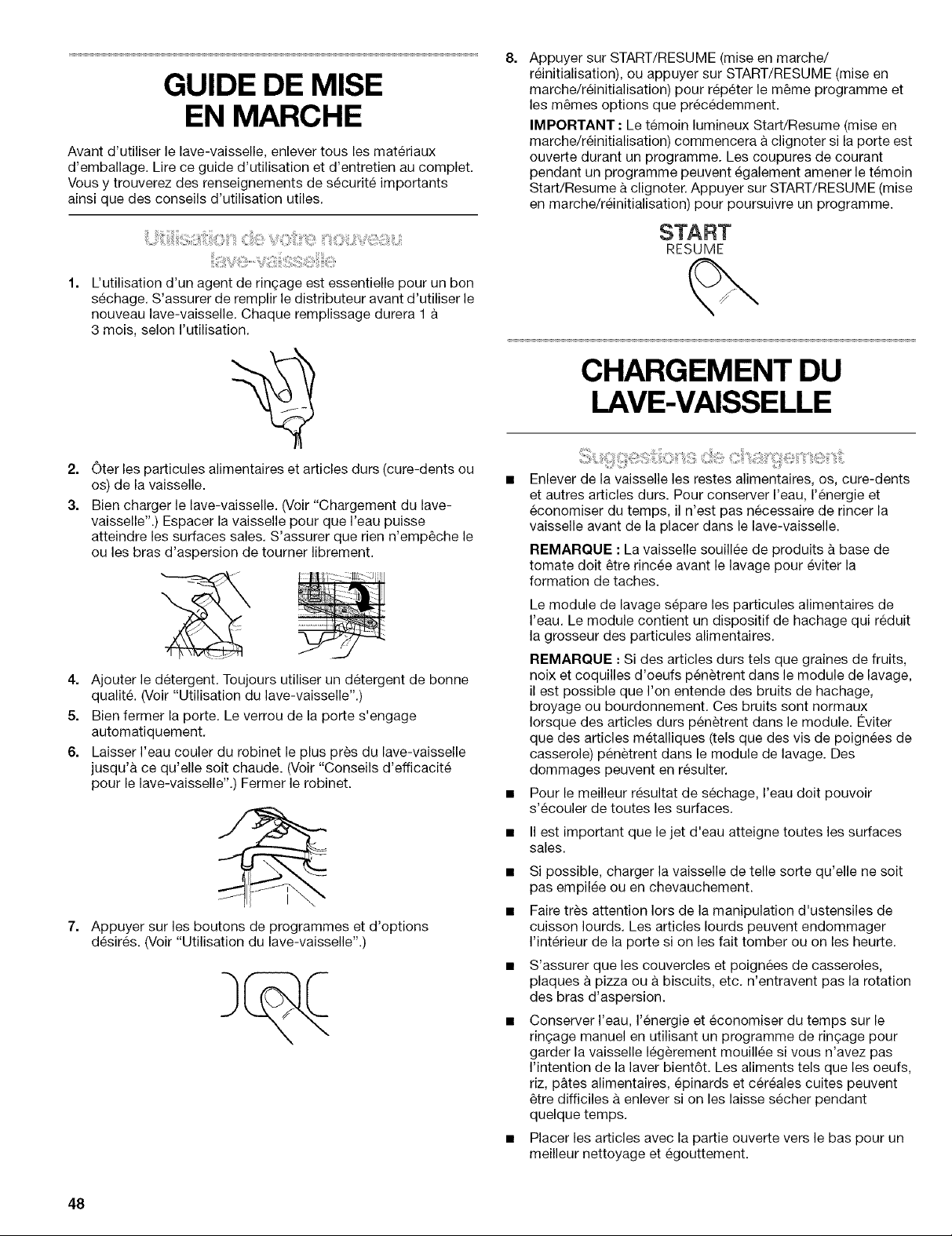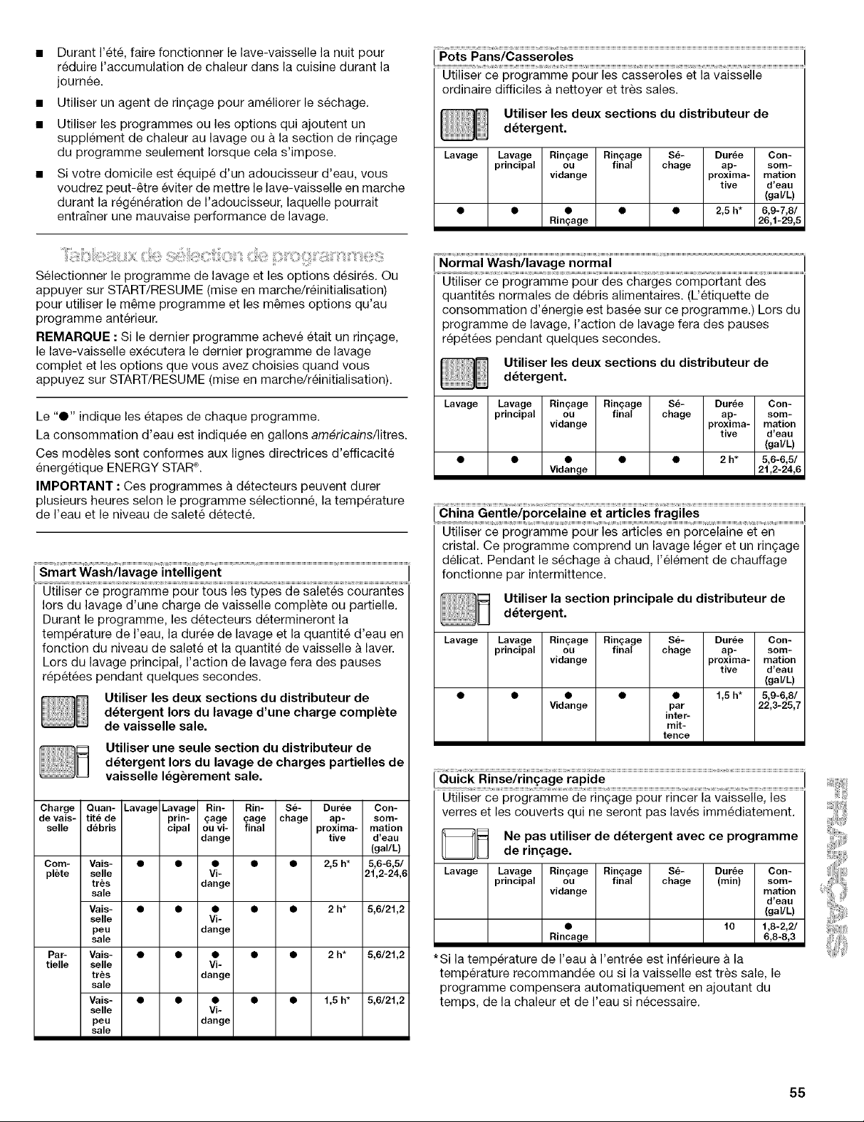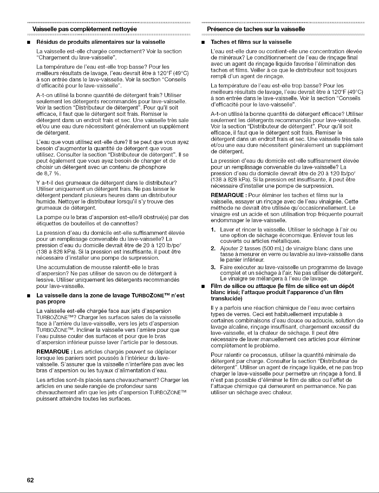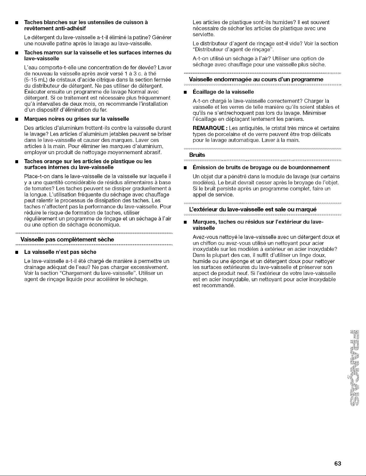 REMARQUE : Pour eliminer les taches et films sur la vaisselle, essayer un ringage avec de I'eau vinaigree. Cette