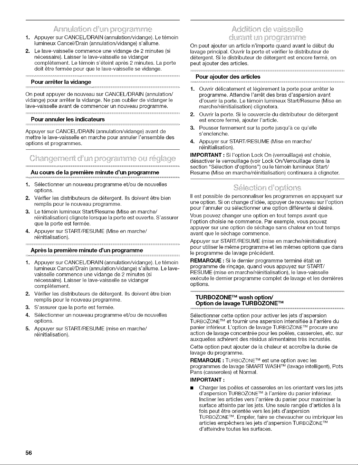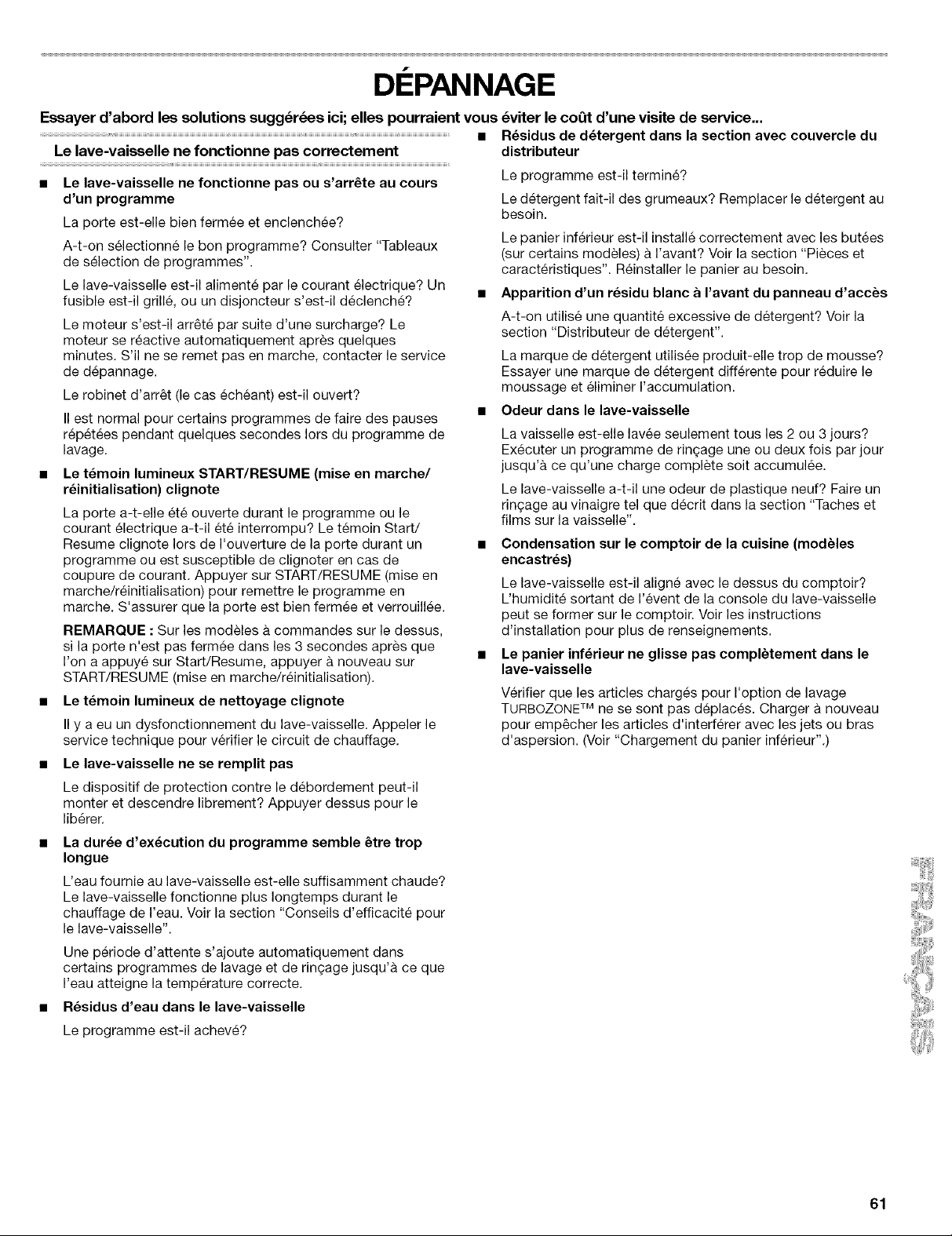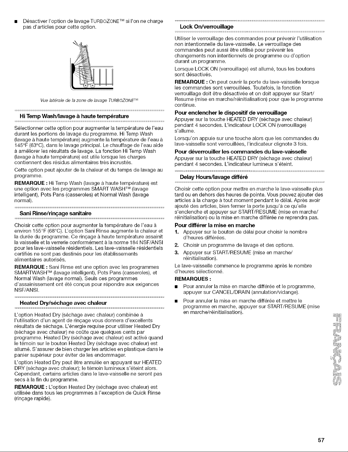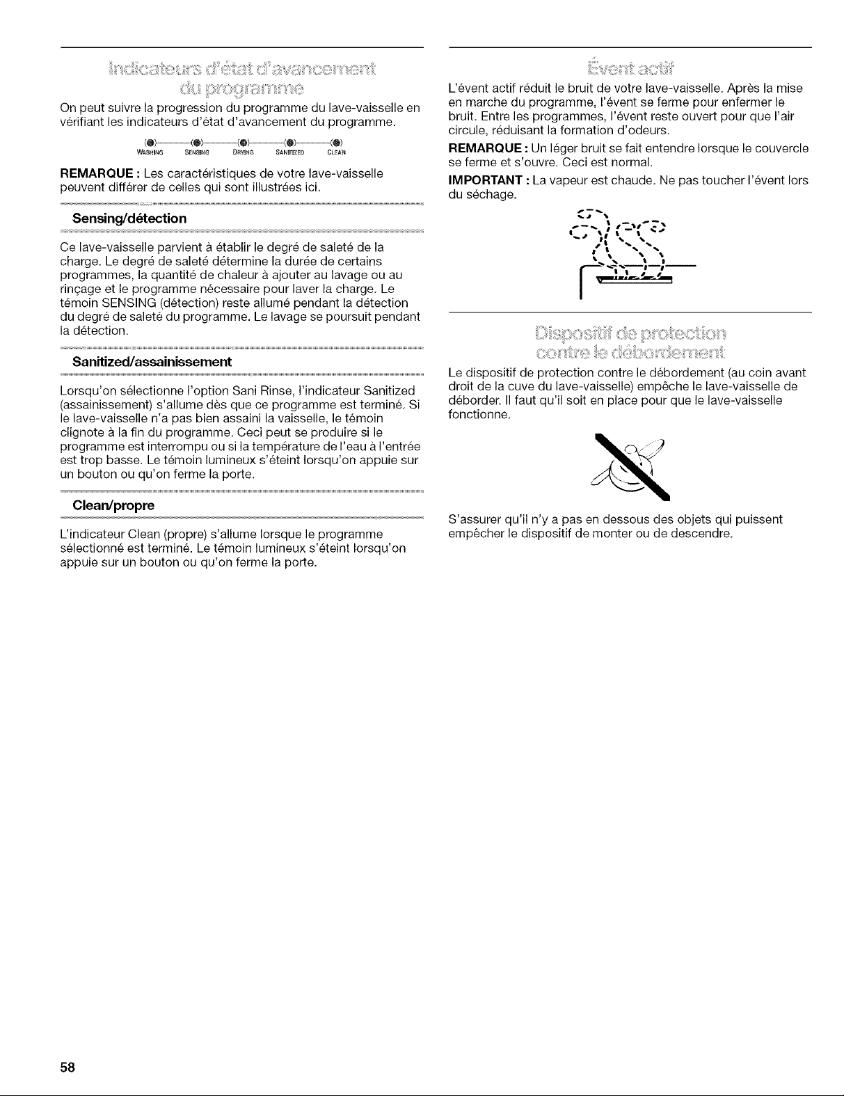 REMARQUE : Pour eliminer les taches et films sur la vaisselle, essayer un ringage avec de I'eau vinaigree. Cette