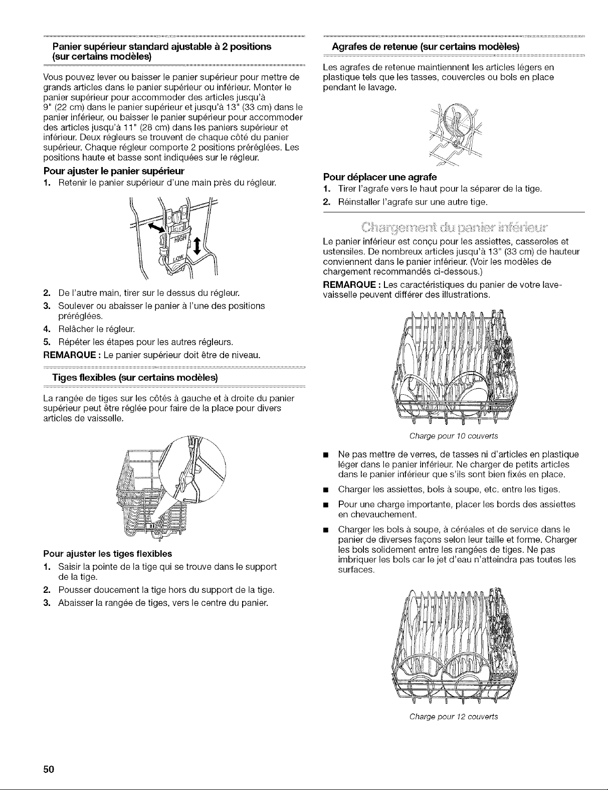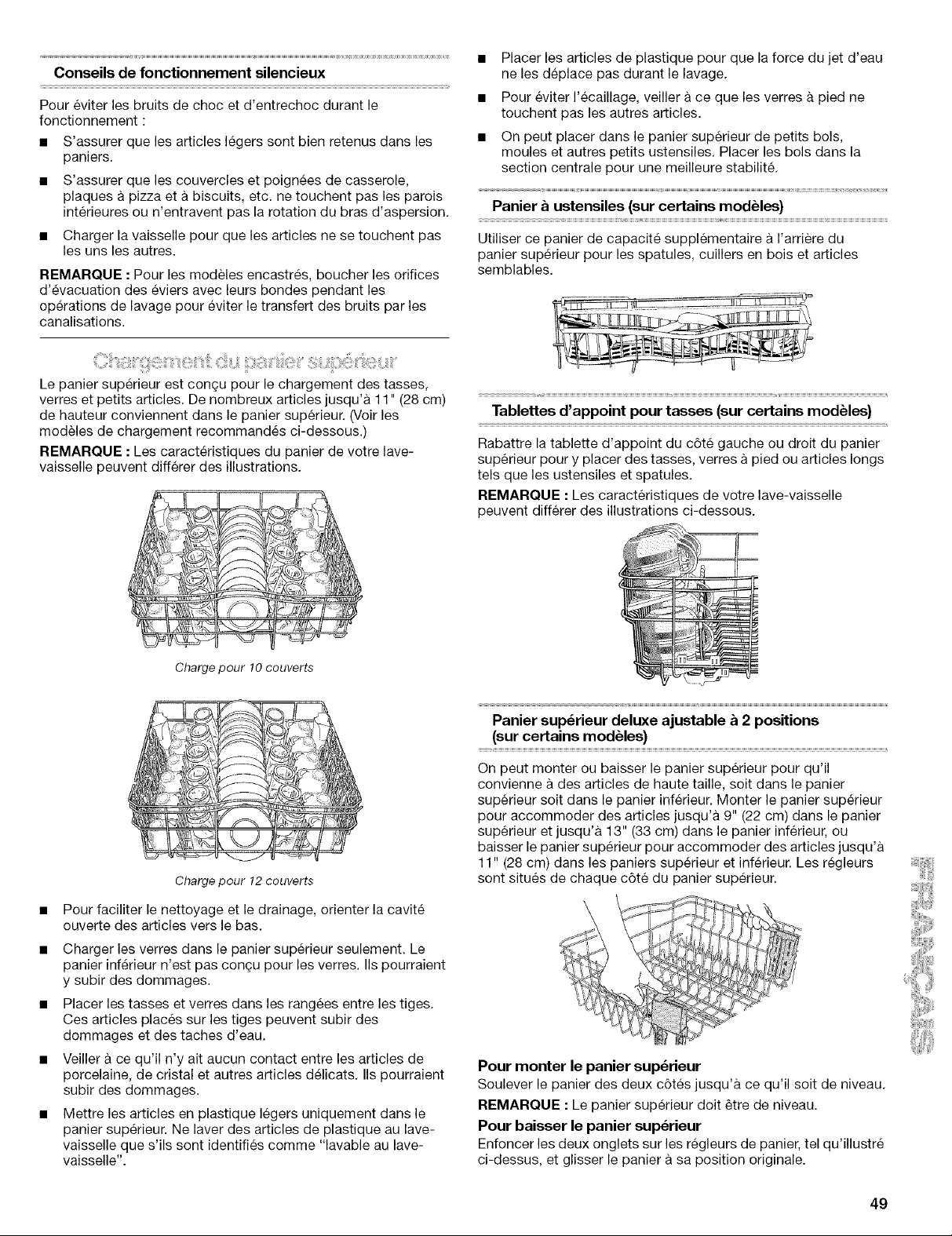 vaisselle et les verres de telle maniere qu'ils soient stables et qu'ils ne s'entrechoquent pas Iors du lavage. Minimiser