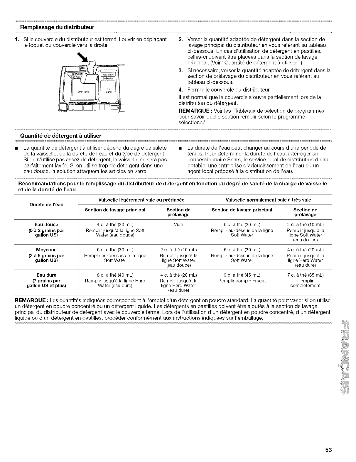 efficace, il faut que le detergent soit frais. Remiser le detergent dans un endroit frais et sec. Une vaisselle tres sale et/ou une eau dure necessitent generalement un supplement de detergent.