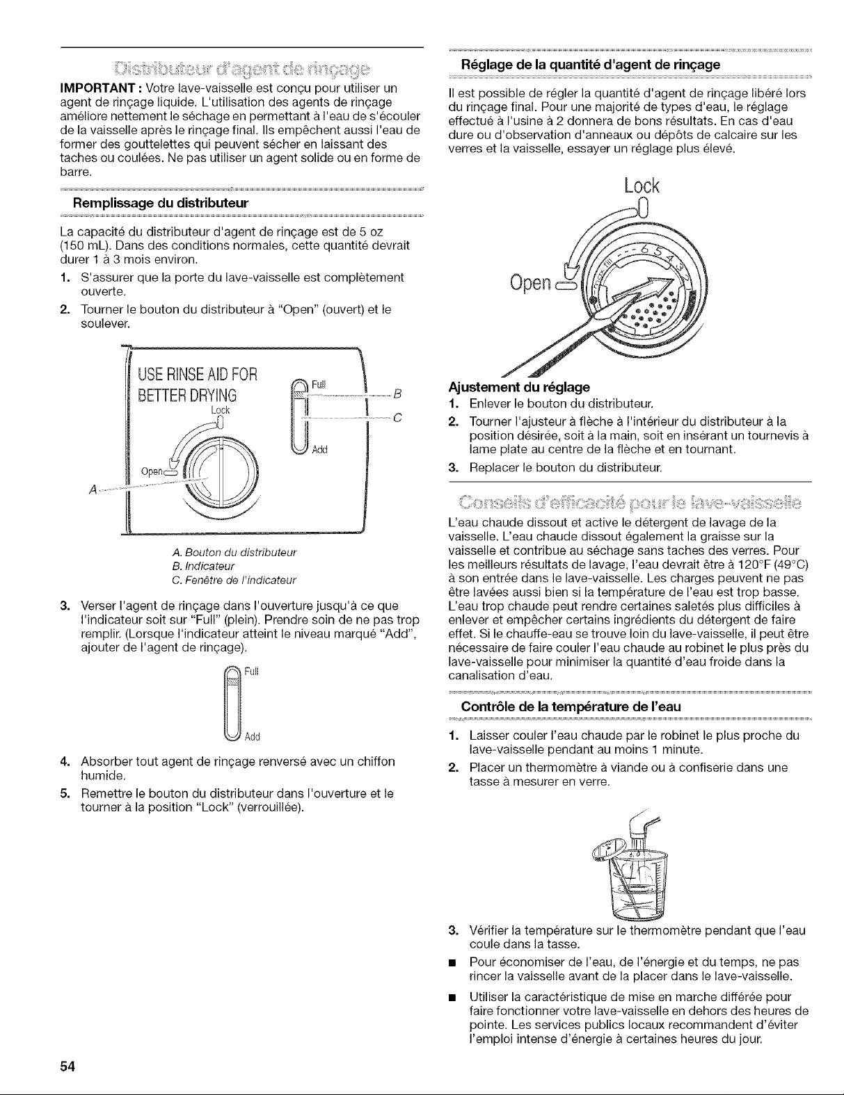 de mineraux? Le conditionnement de I'eau de ringage final avec un agent de ringage liquide favorise I'elimination des taches et films. Veiller ace que le distributeur soit toujours rempli d'un agent de ringage.