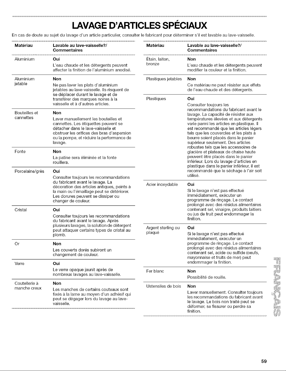 types de porcelaine et de verre peuvent _tre trop delicats pour le lavage automatique. Laver a la main.