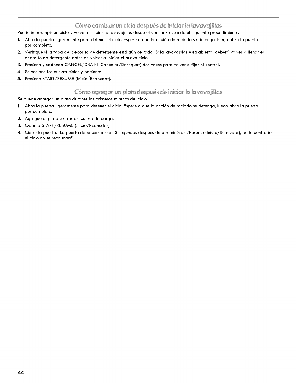 Changing A Cycle After Dishwasher Is Started ......................... 19