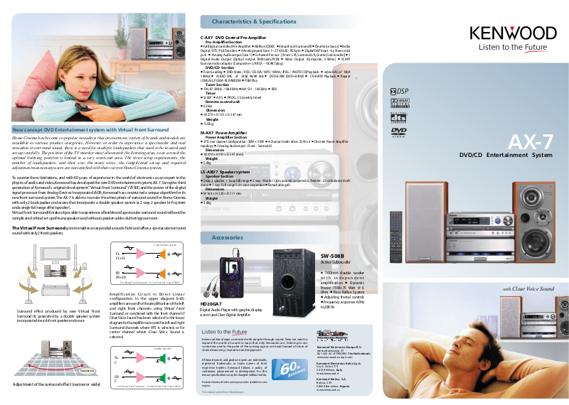 physics of audio and video, Kenwood has developed the new DVD entertainment system, AX-7. Using the third