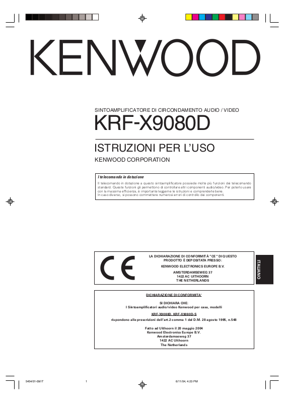 1. KENWOOD segue una politica di miglioramento e sviluppo continui. Per tale motivo, è possibile che le caratteristiche tecniche vengano modificate
