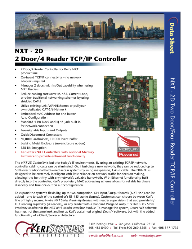 • 2 Door/4 Reader Controller for Keri’s NXT