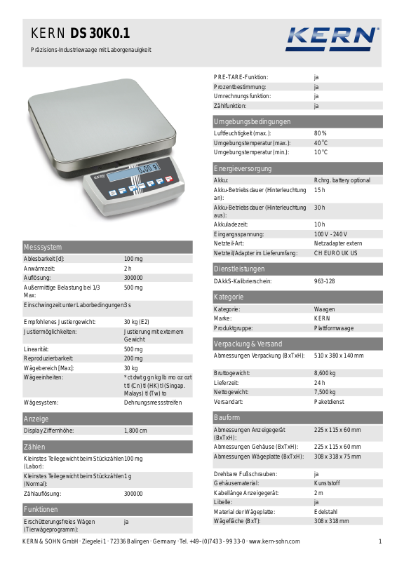 KERN & SOHN GmbH.Ziegelei 1.72336 Balingen.Germany.Tel. +49–(0)7433 - 99 33-0.www.kern-sohn.com 1