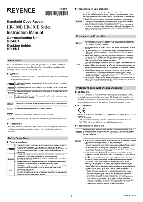 Hawnhekk, KEYENCE CORPORATION, jiddikjara li dan HR-100B/HR-101B/
