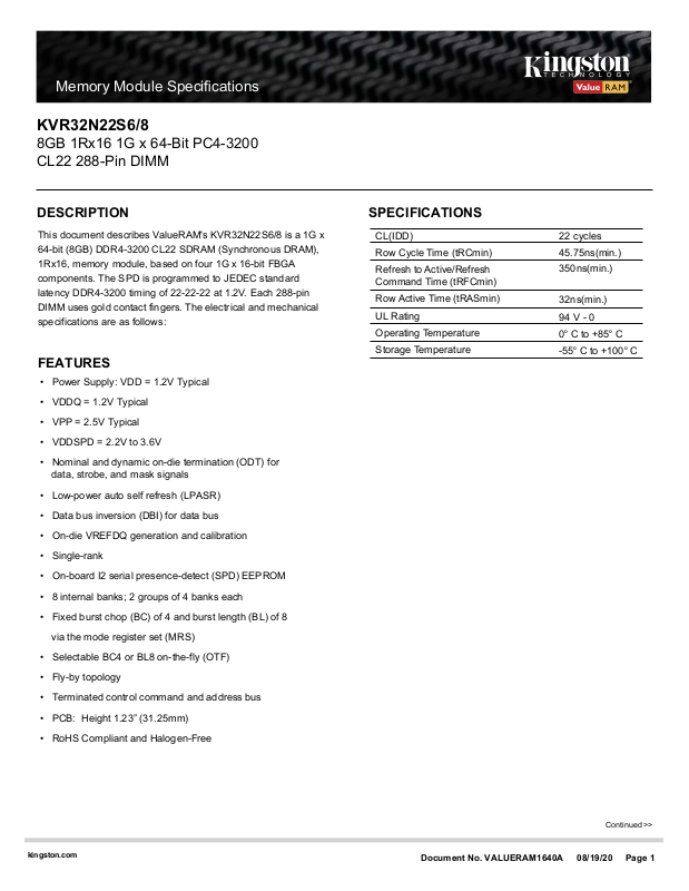 Document No. VALUERAM1640A 08/19/20 Page 1