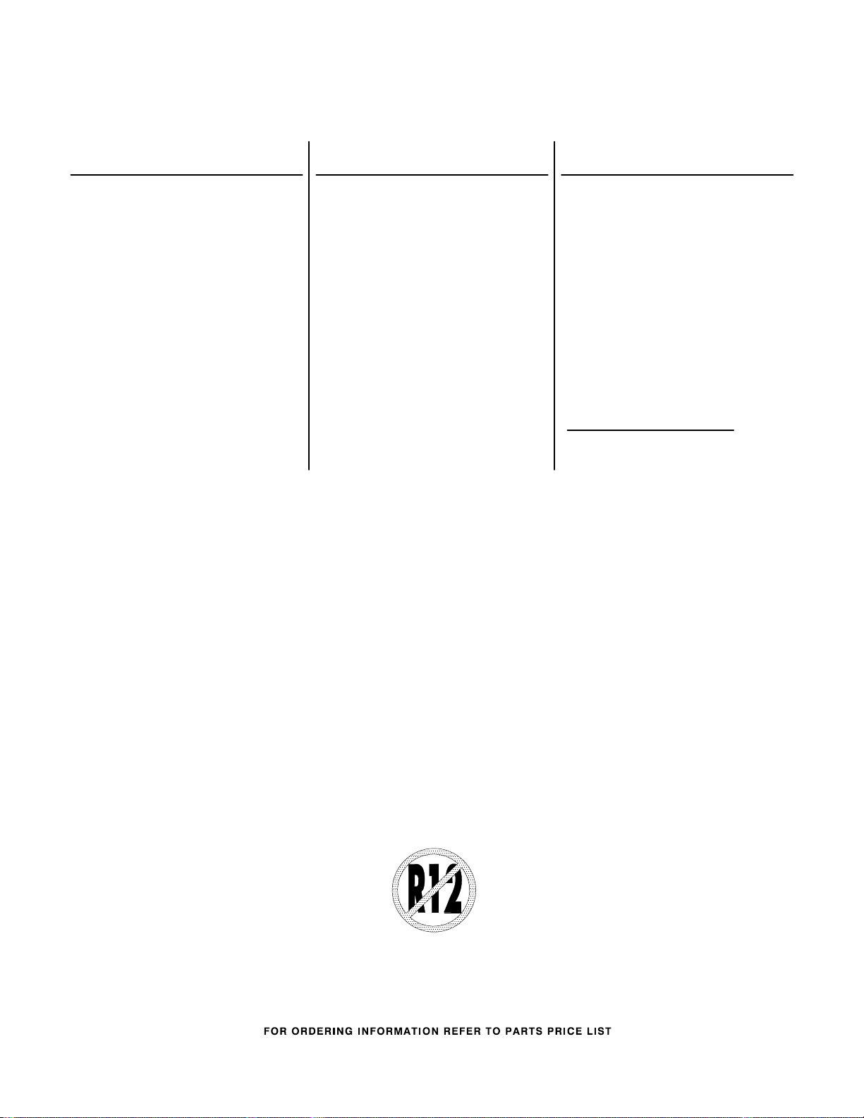Parts Not Illustrated and