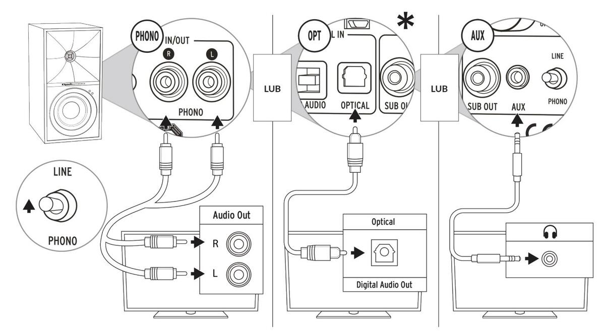 NIEBIESKI = wejście Bluetooth® CZERWONY = wejście optyczne FIOLETOWY = wejście gramofonowe BIAŁY = wejście USB Audio ZIELONY = wejście AUX