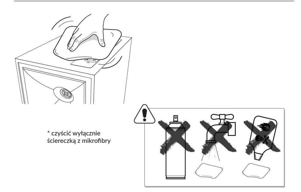 OSTRZEŻENIE: Nie umieszczać na urządzeniu źródeł otwartego ognia.