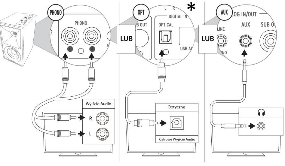 * TV należy ustawić na PCM (lub tylko Stereo)