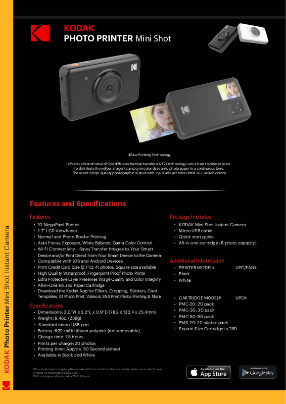 KODAK Photo Printer Mini Shot Instant Camera
