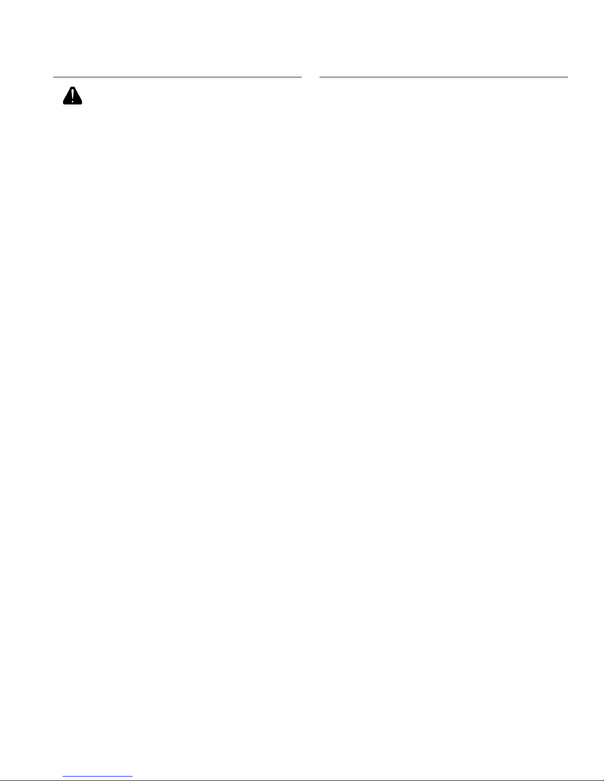 Gasoline is extremely ammable and its vapors can explode if ignited. Store gasoline only in approved containers, in well ventilated, unoccupied buildings, away from sparks or ames. Spilled fuel could ignite if it comes in contact with hot parts or sparks from ignition. Never use gasoline as a cleaning agent.