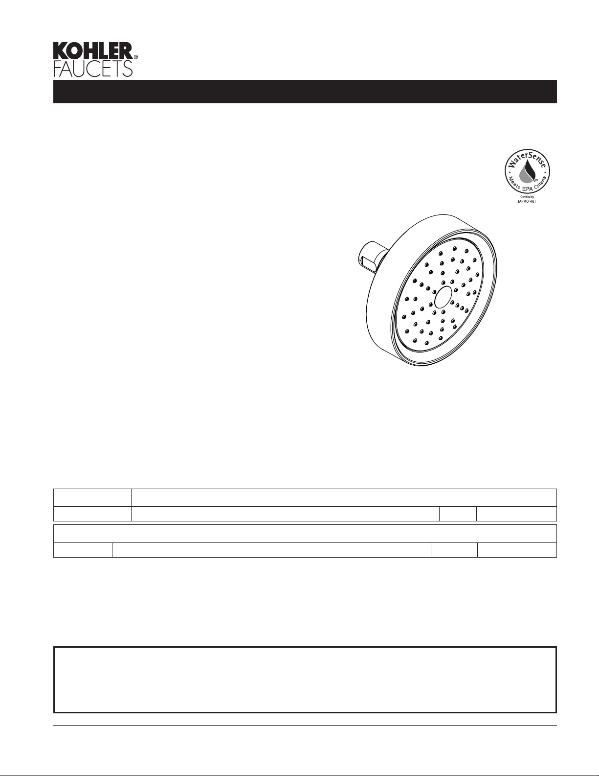 (7.6 L) per minute flow rate and a 1/2″-14 NPT connection. Showerhead shall be Kohler Model K-939-____.