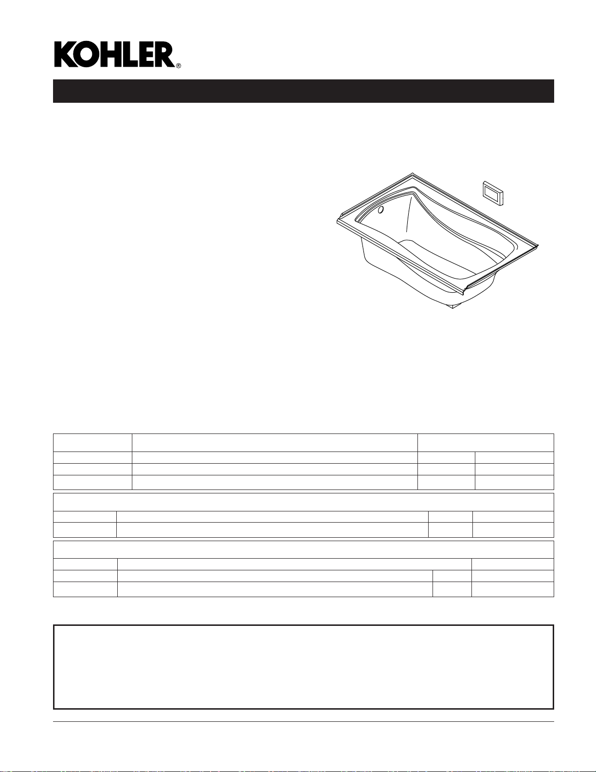 models), or 60″ (1524 mm) in length, 36″ (914 mm) in width, and 21-1/4″ (540 mm) in height (integral flange models). Bath shall