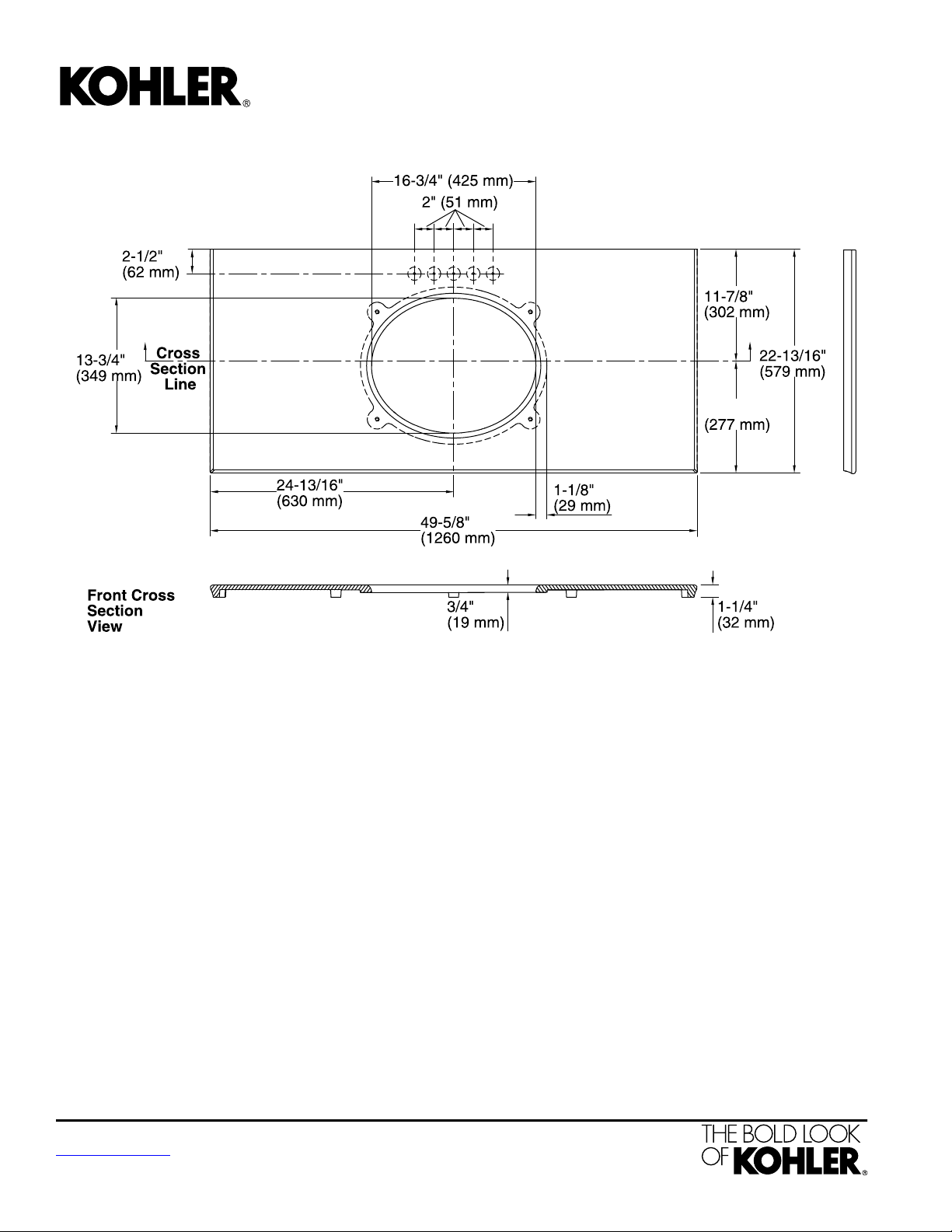 49-5/8" (1260 mm) x 22-13/16" (579 mm)