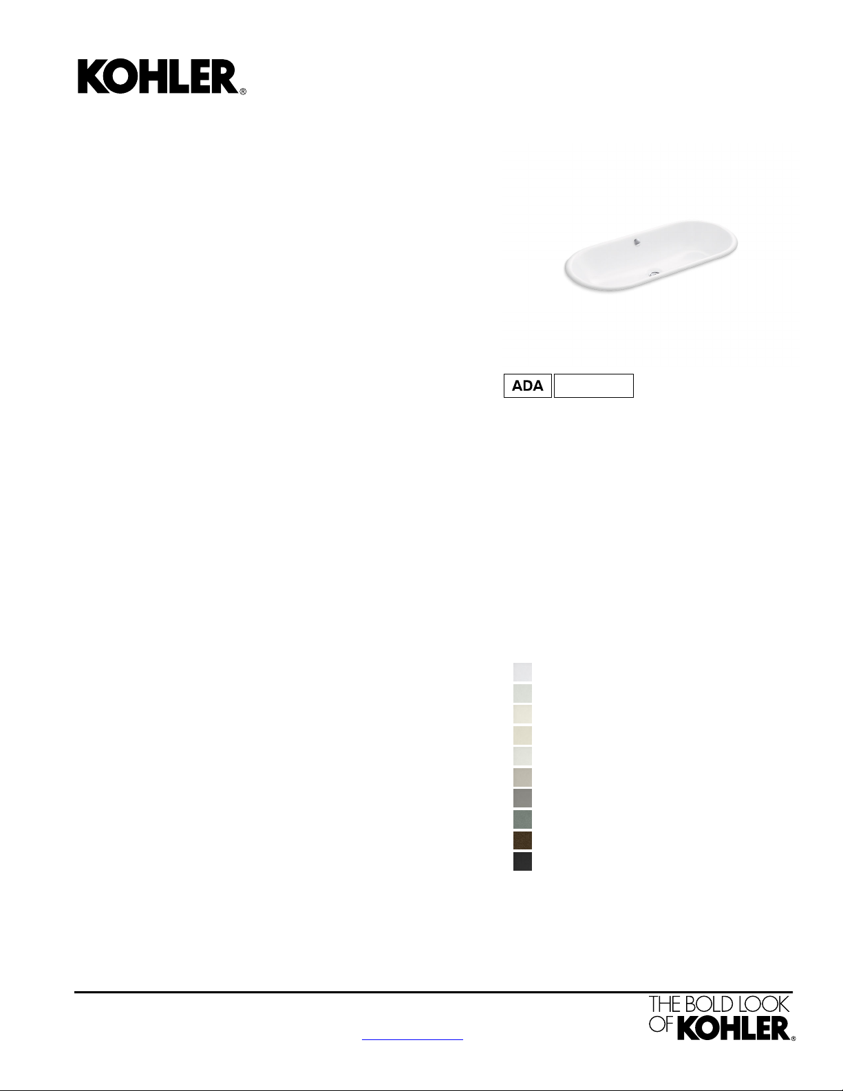 For the most current Specification Sheet, go to www.kohler.com.