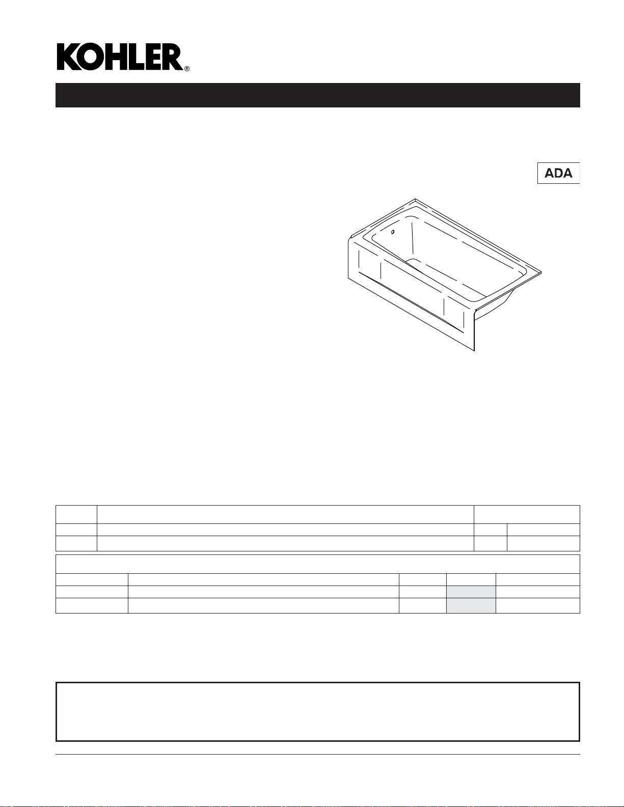 16-1/4″ (413 mm) in height. Bath shall have a left or right drain. Bath shall be ADA compliant when installed with a seat at head