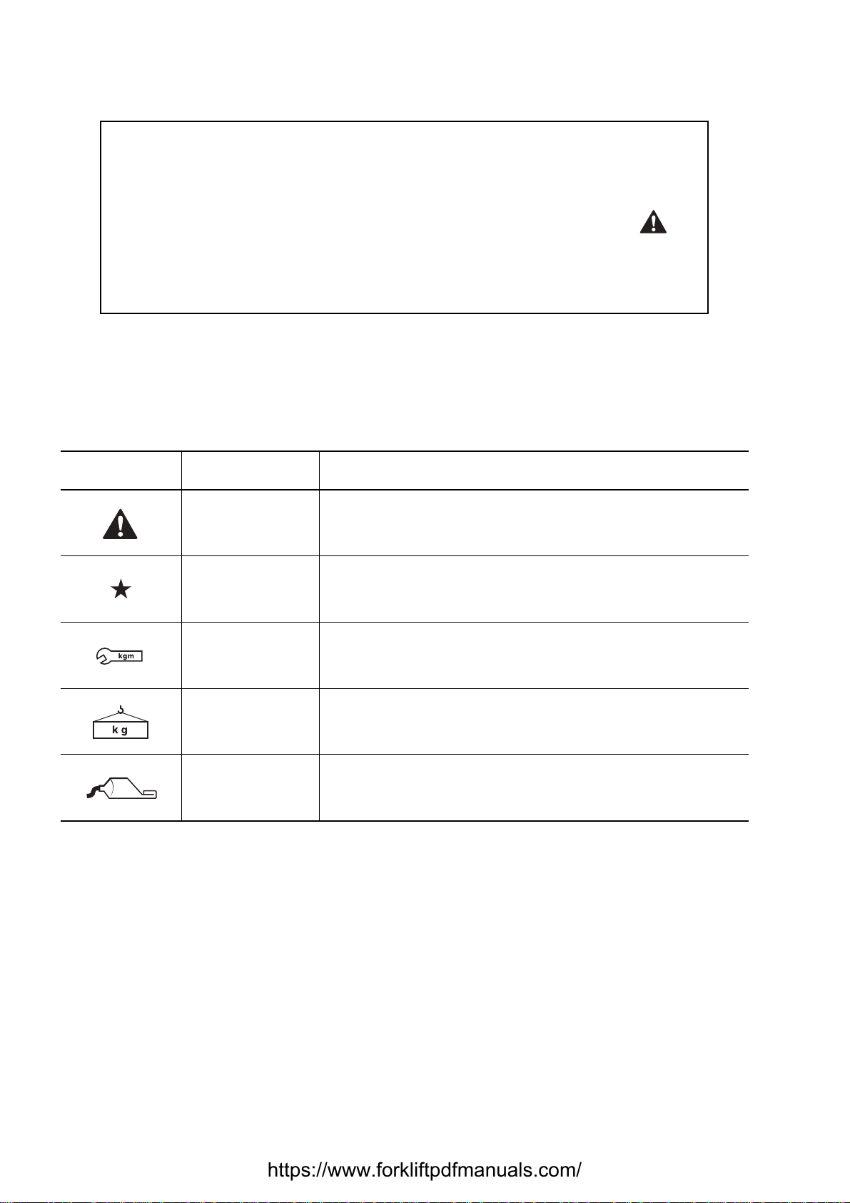 Whenever work requiring safety precautions are described in this manual, a flag mark