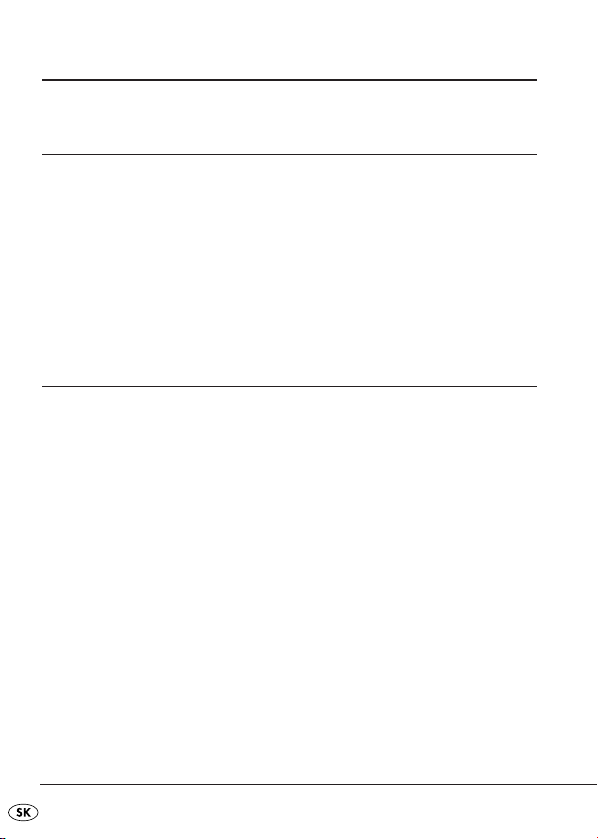 na poškodenia krehkých častí, ako sú spínače alebo akumulátory. Výrobok je určený len na súkromné používanie a nie na podnikateľské