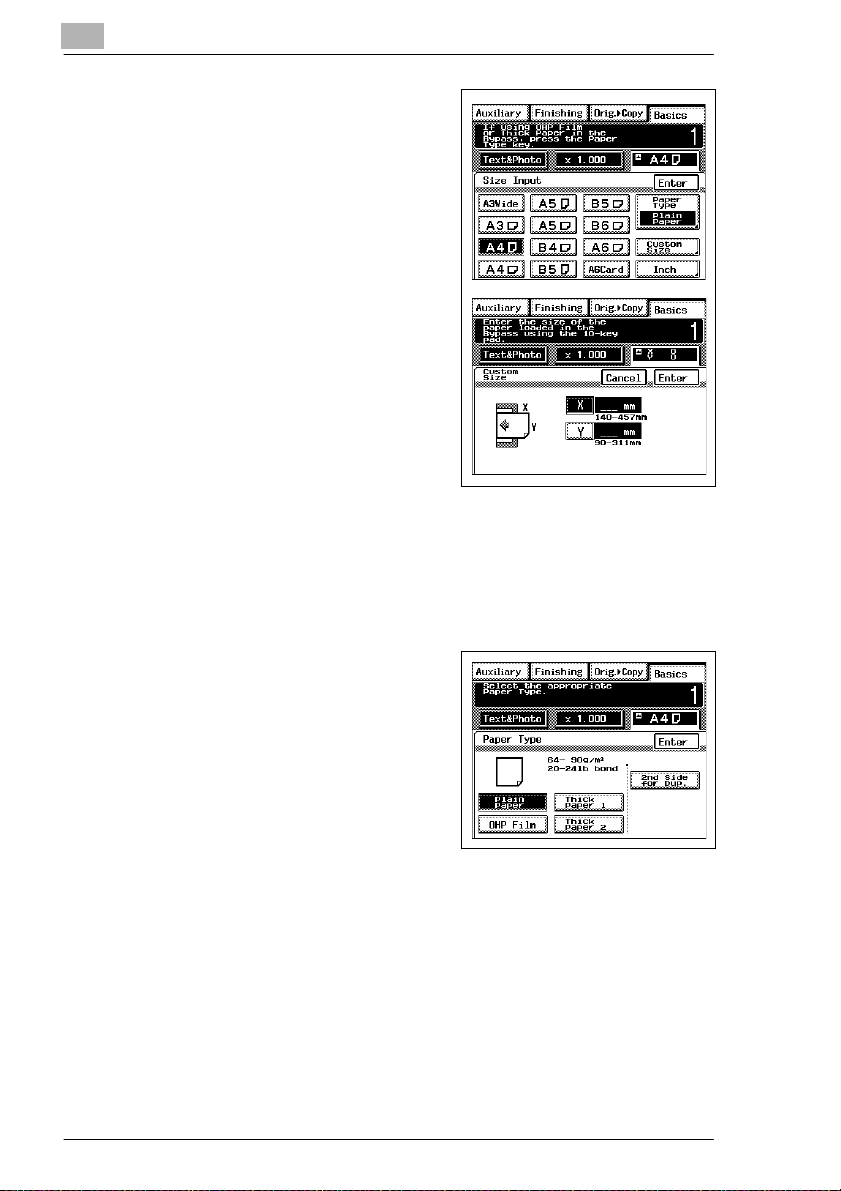 Either the paper source is selected automatically when the size of the document is detected, or the desired paper source can be selected manually.