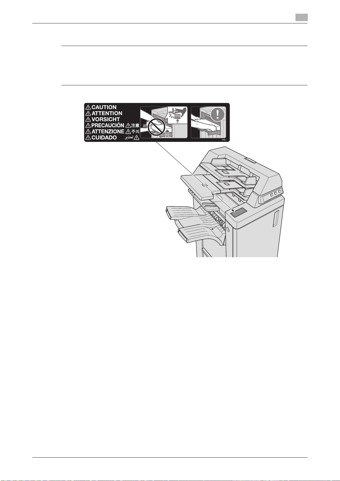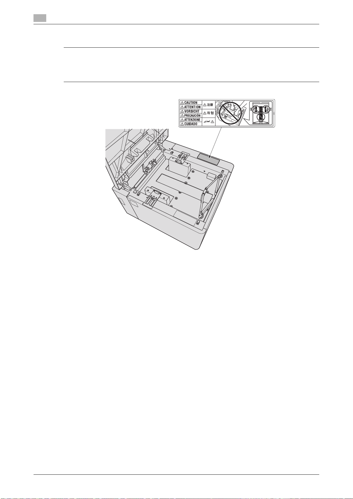 of the tray on the left side of the staple finisher, as any interference may cause damage to the staple finisher.