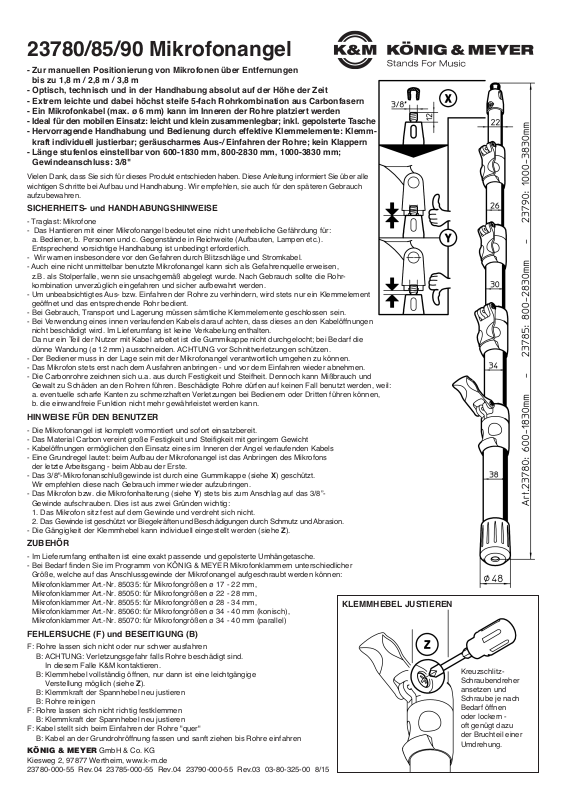 - Bei Bedarf finden Sie im Programm von KÖNIG & MEYER Mikrofonklammern unterschiedlicher