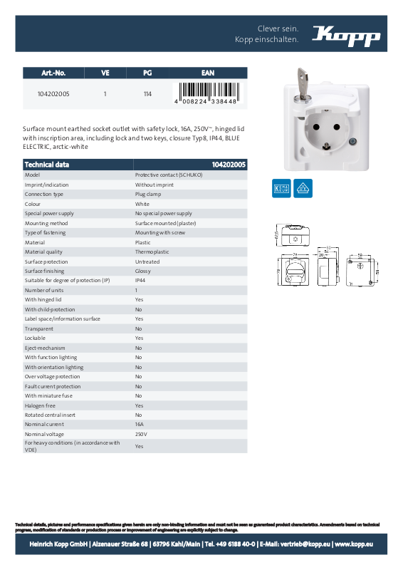 Heinrich Kopp GmbH | Alzenauer Straße 68 | 63796 Kahl/Main | Tel. +49 6188 40-0 | E-Mail: vertrieb@kopp.eu | www.kopp.eu