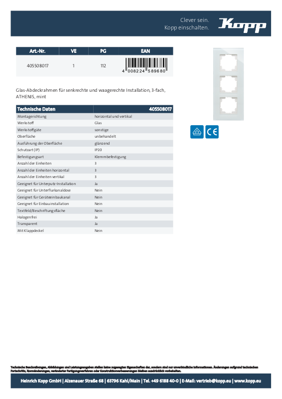 Heinrich Kopp GmbH | Alzenauer Straße 68 | 63796 Kahl/Main | Tel. +49 6188 40-0 | E-Mail: vertrieb@kopp.eu | www.kopp.eu