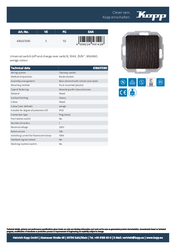 Heinrich Kopp GmbH | Alzenauer Straße 68 | 63796 Kahl/Main | Tel. +49 6188 40-0 | E-Mail: vertrieb@kopp.eu | www.kopp.eu