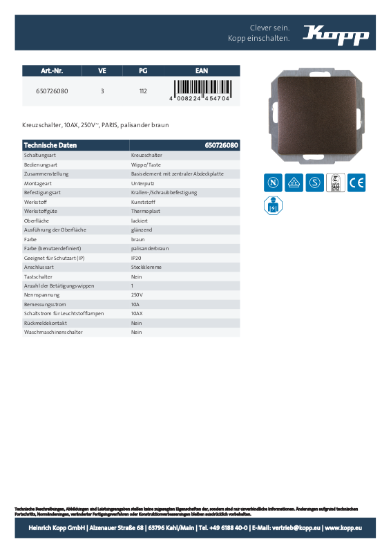 Heinrich Kopp GmbH | Alzenauer Straße 68 | 63796 Kahl/Main | Tel. +49 6188 40-0 | E-Mail: vertrieb@kopp.eu | www.kopp.eu