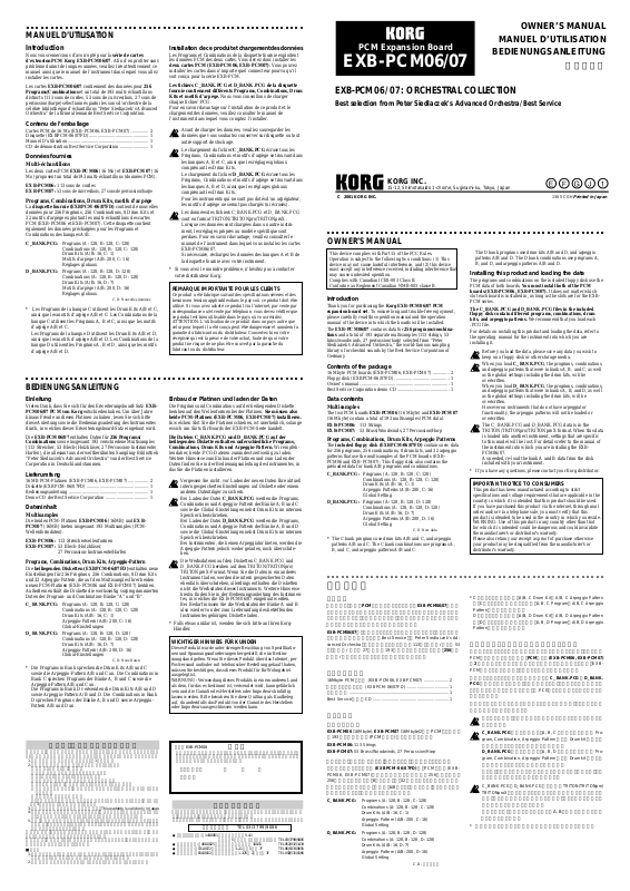 Vielen Dank, dass Sie sich für den Erweiterungsboard-Satz EXBPCM06/07 PCM von Korg entschieden haben. Um über Jahre