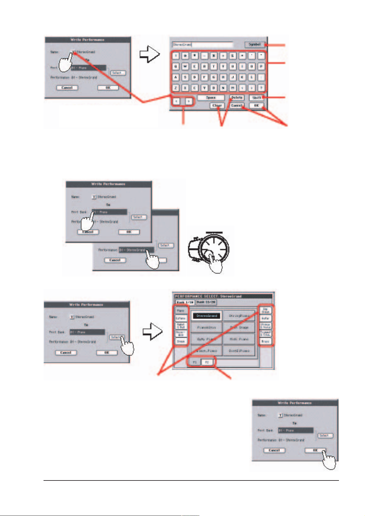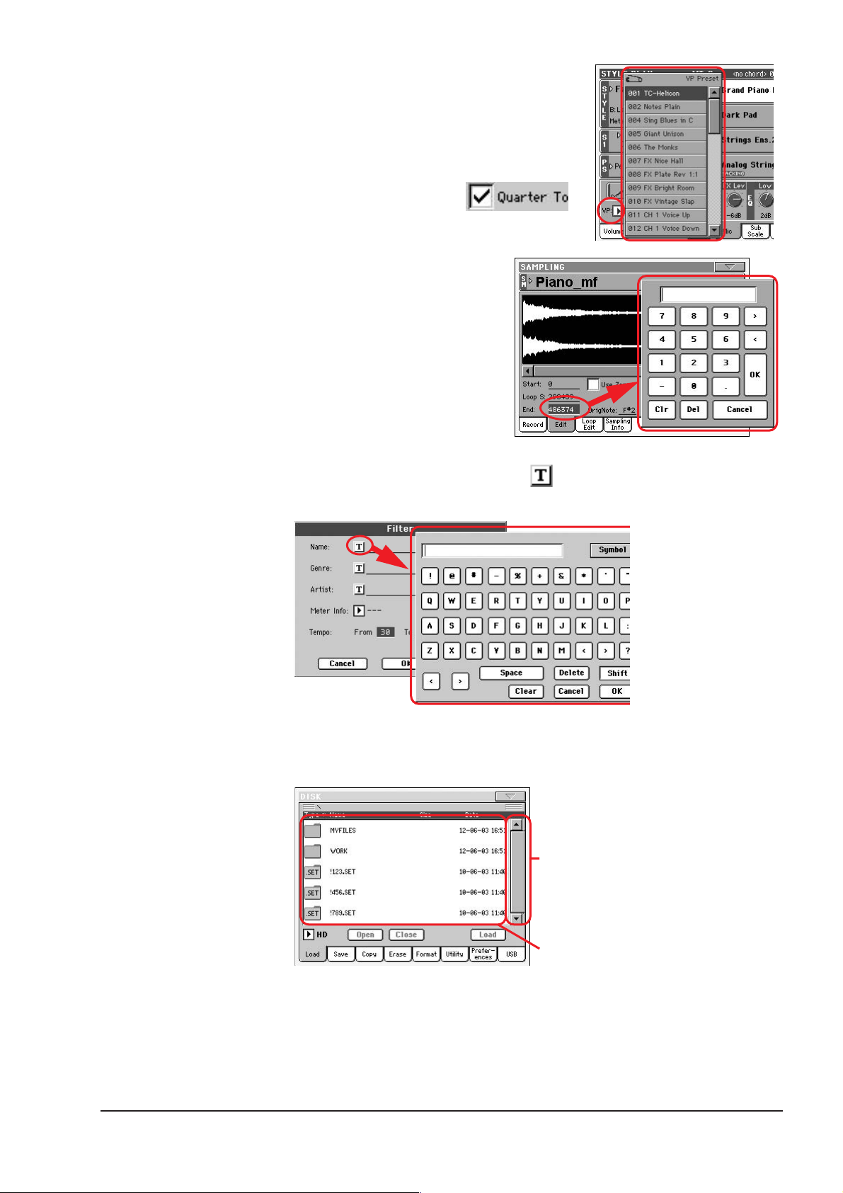 Если прикоснуться к полю программы, то вместо окна выбора программы возникает клавиатура ввода символов, позволяющая ввести значения сообщений Control Change/Program Change (см. рисунок). Если введено хотя бы одно из трех значений, то посылается сообщение Program Change.