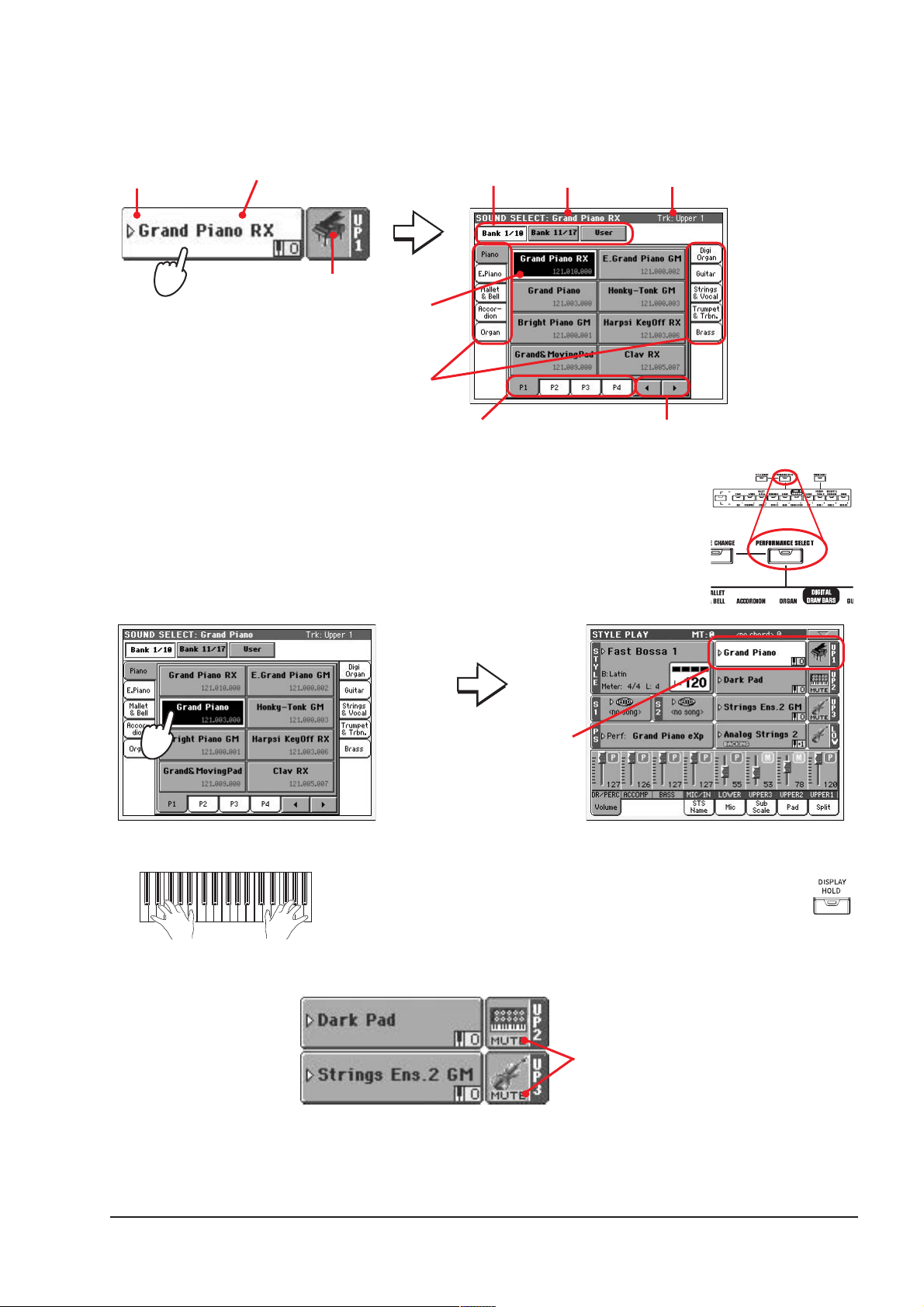 Top=80], а для трека Upper 2 — [Bottom=81, Top=127]. В этом случае при мягкой манере исполнения будет воспроизводиться программа El.Piano 1, а при экспрессивной — программа El.Piano 2.