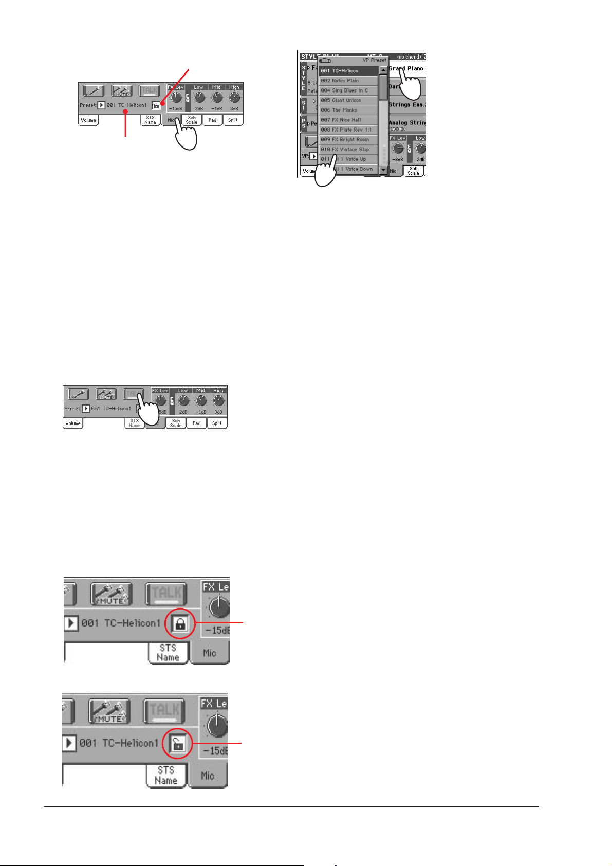странице 202. С помощью педали-переключателя управлять этой функцией невозможно. В этом случае требуется контроллер непрерывного типа, например, педаль громкости или экспрессии. Для педали или программируемого слайдера необходимо выбрать опцию “KB Expression”. А затем, для сохранения произведенных установок в память глобальных параметров — выбрать команду Write Global-Global Setup меню страницы.