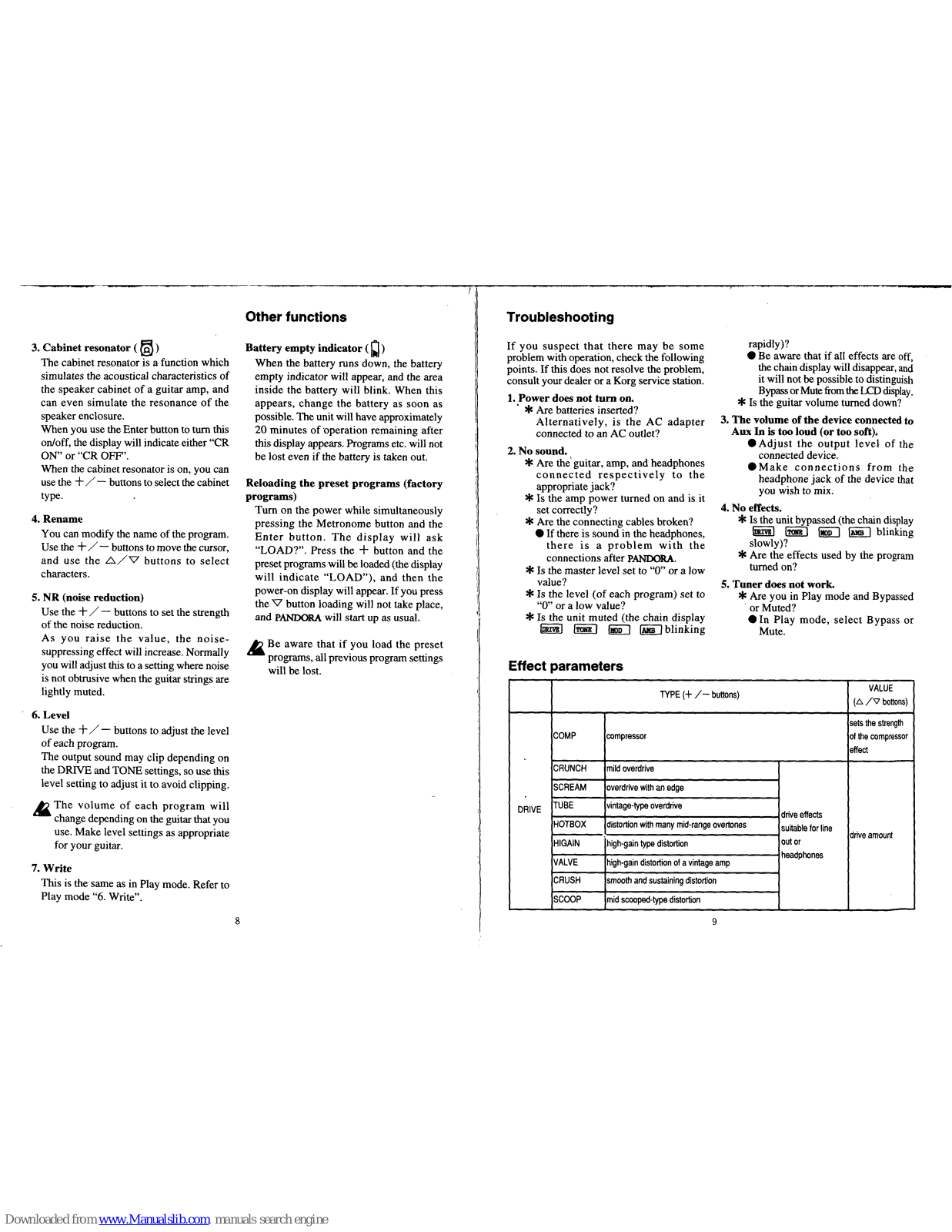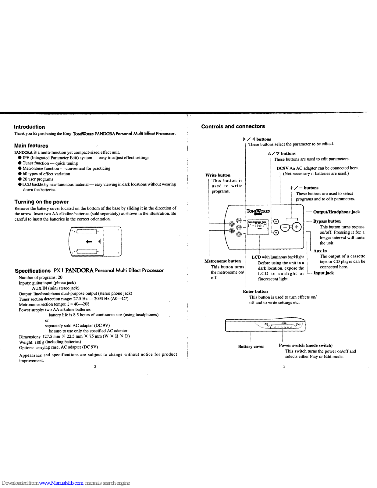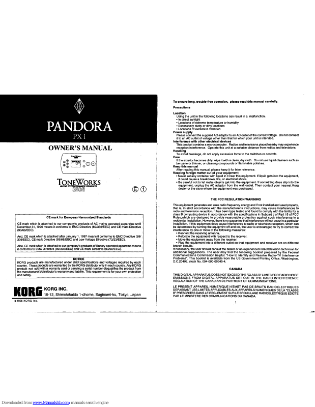 Korg Pandora PX1 Owner's Manual