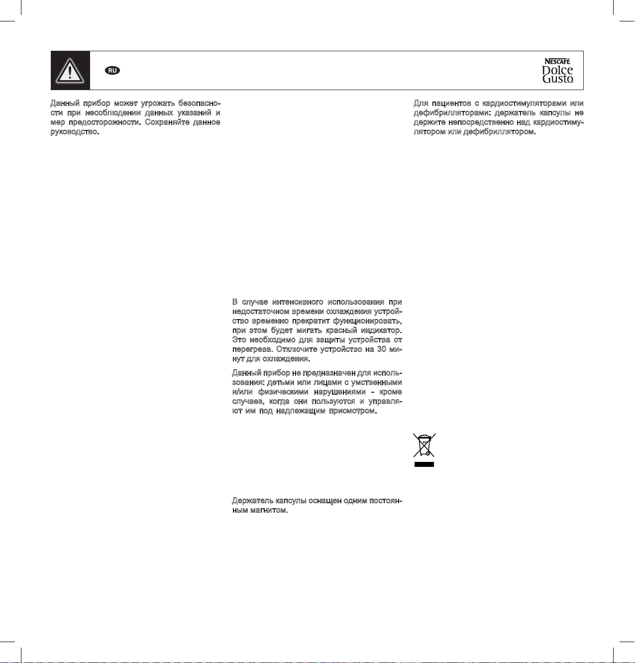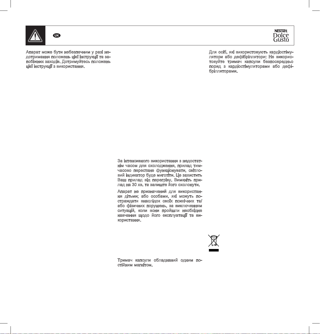 Для осіб, які використовують кардіостімулятори або дефібріллятори: Не використовуйте тримач капсули безпосередньо