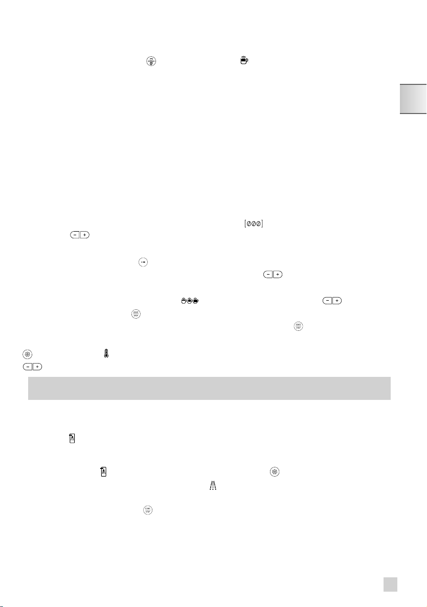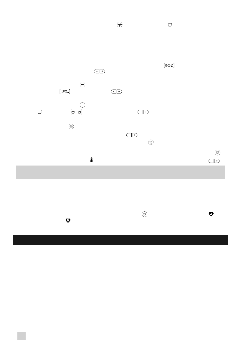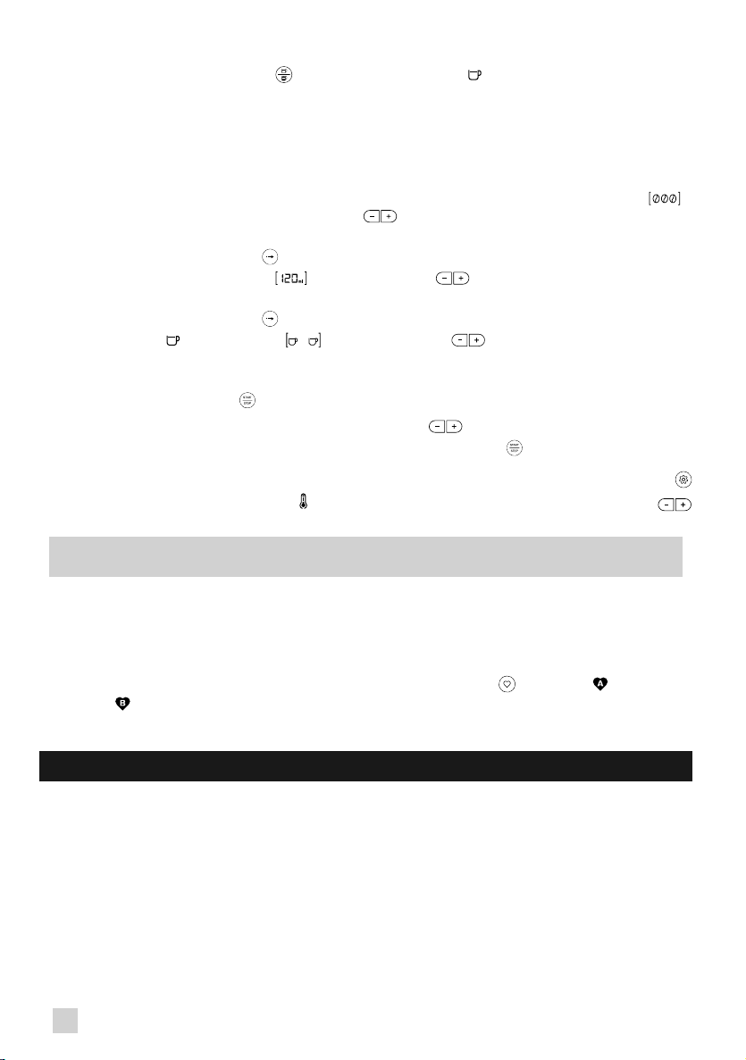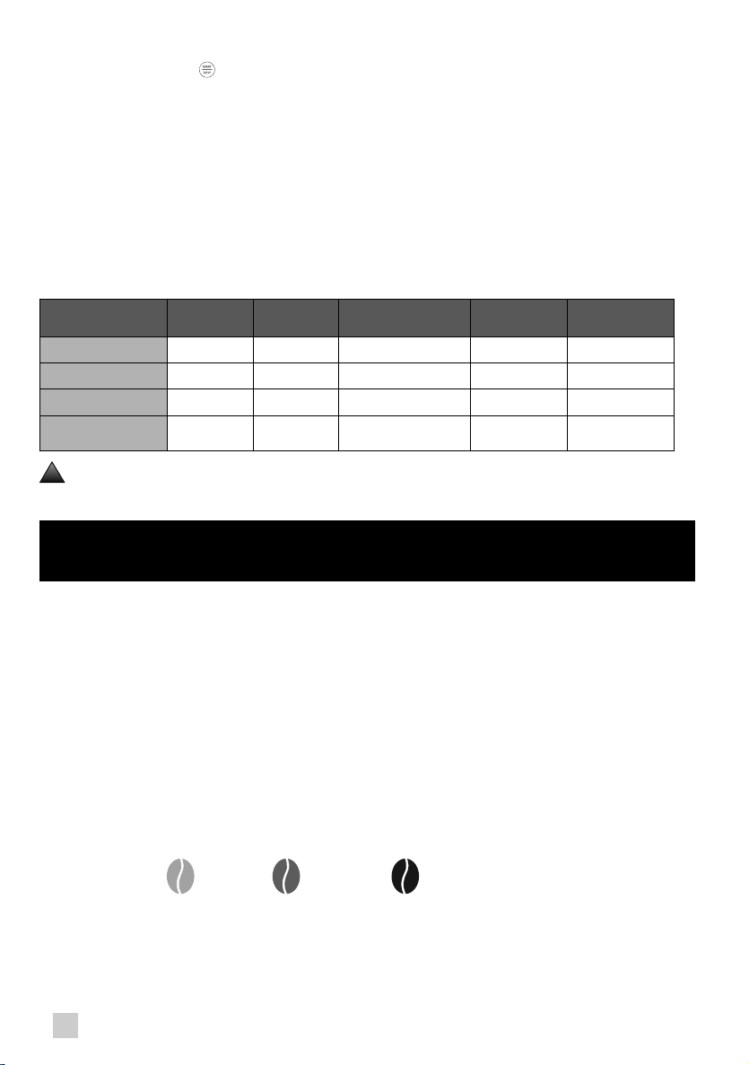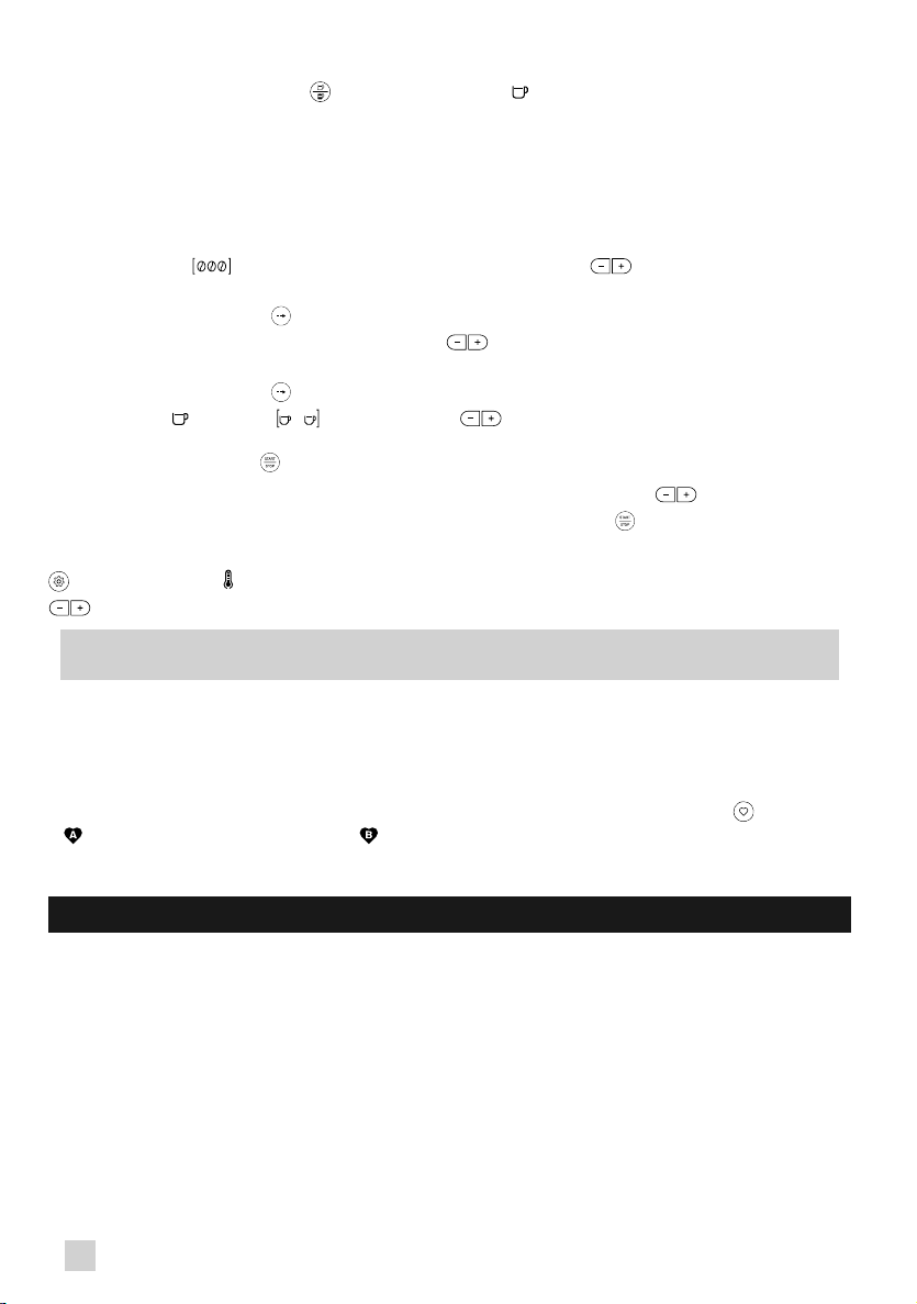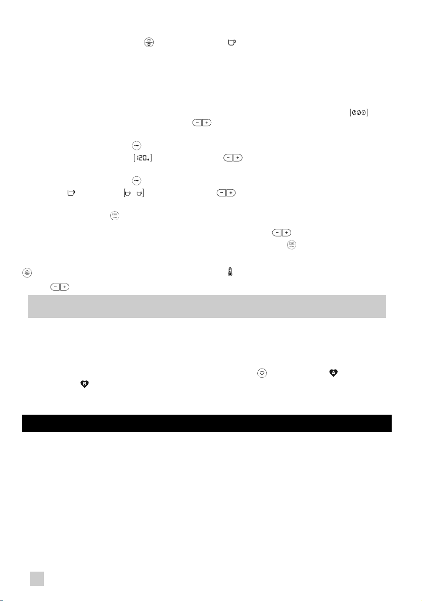 - Velg kaffestyrken (symbolisert av kaffebønnene vist på skjermen i parentes)ved å bruke + knappen for