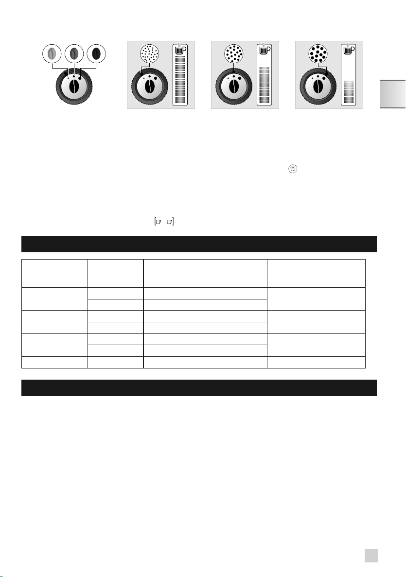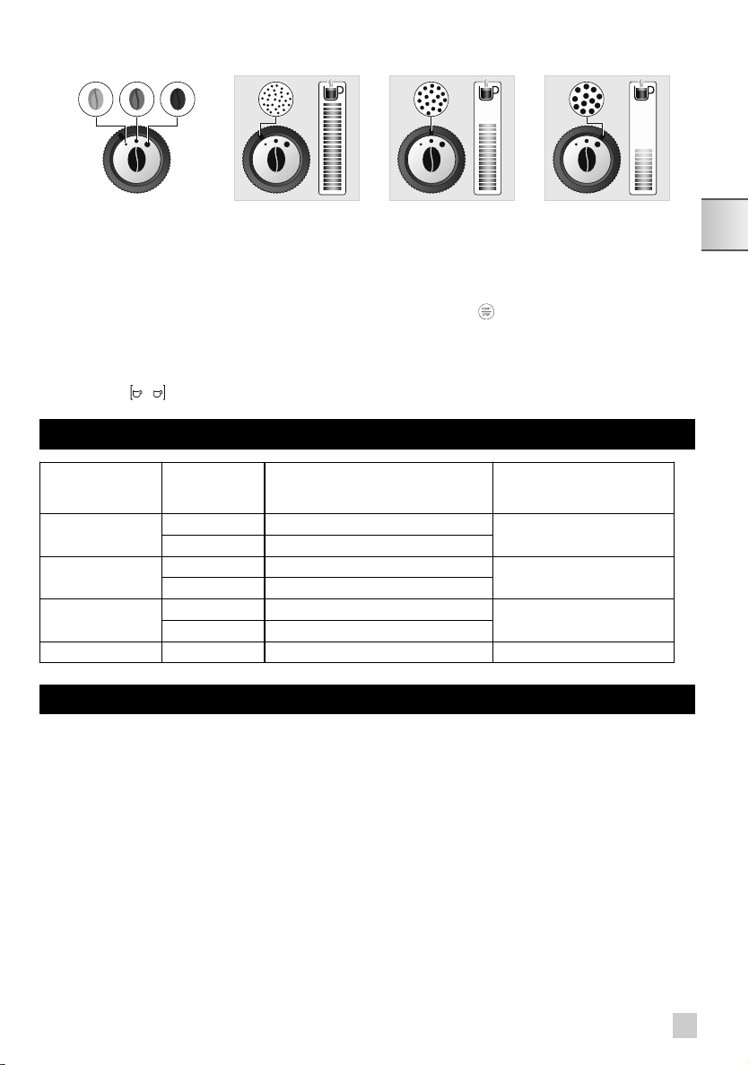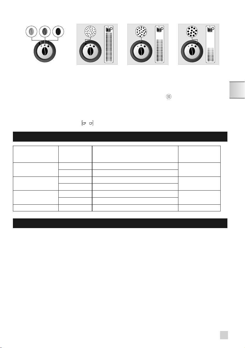 Avhengig av drikken din kan du justere korningsgraden av kaffebønnene; For å gjøre dette, se kapittel «FØR DU