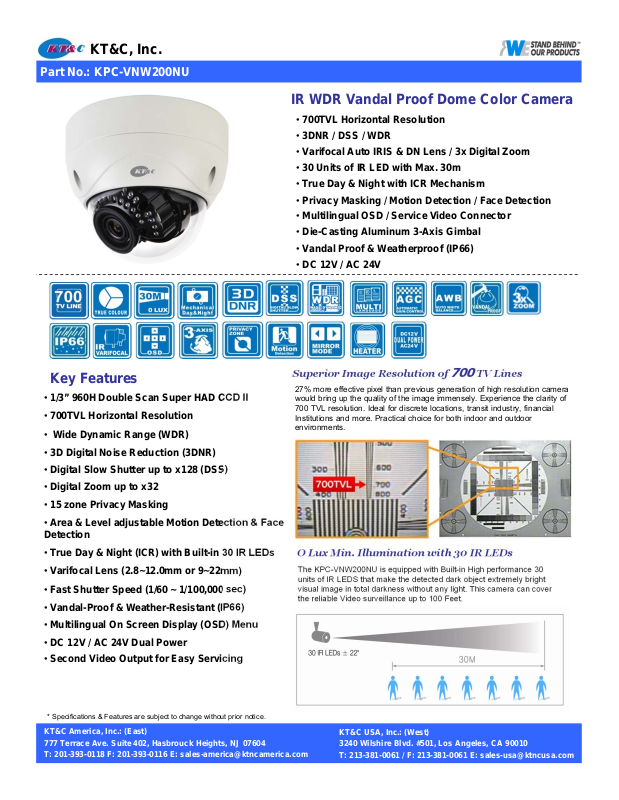 700 TVL resolution. Ideal for discrete locations, transit industry, financial