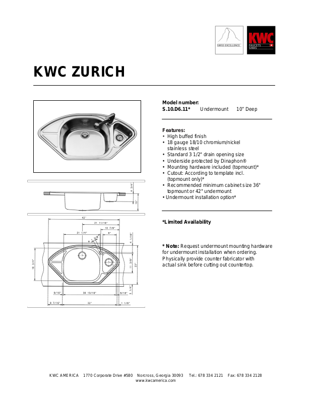 KWC AMERICA 1770 Corporate Drive #580 Norcross, Georgia 30093 Tel.: 678 334 2121 Fax: 678 334 2128