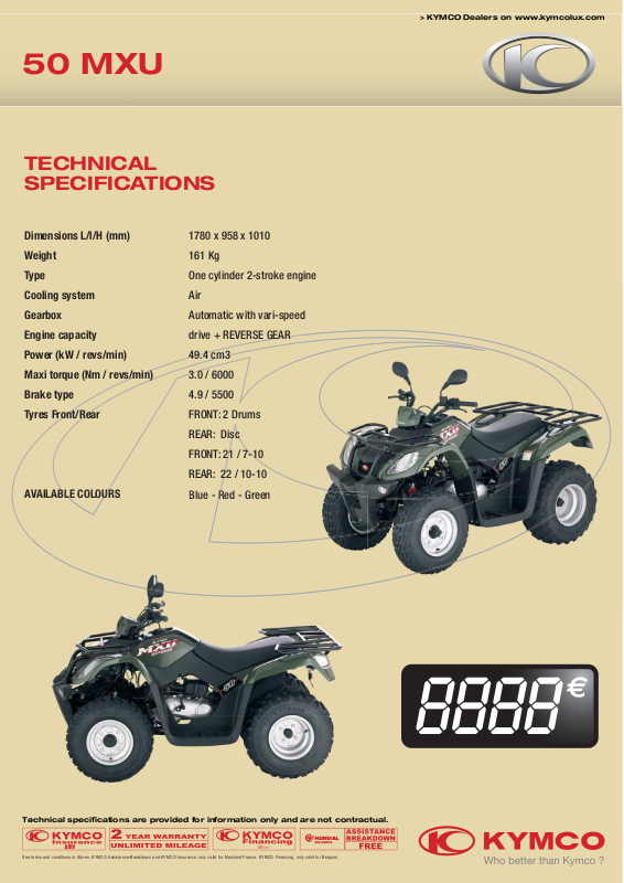 See terms and conditions in Stores. KYMCO Assistance-Breakdown and KYMCO Insurance, only valid for Mainland France. KYMCO Financing, only valid for Belgium.