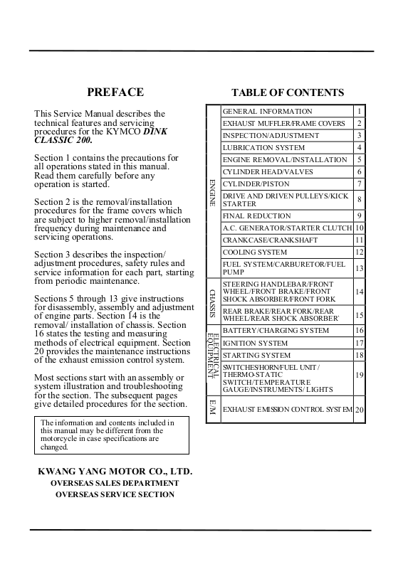 procedures for the KYMCO DINK