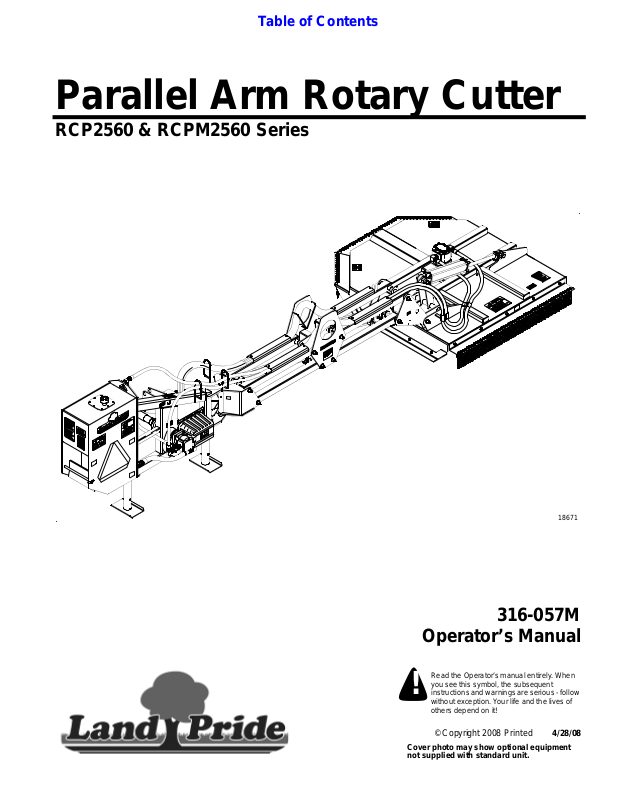 Land Pride provides this publication“as is” without warranty of any kind, either expressed or implied. While every precaution has been taken in the preparation of this manual, Land