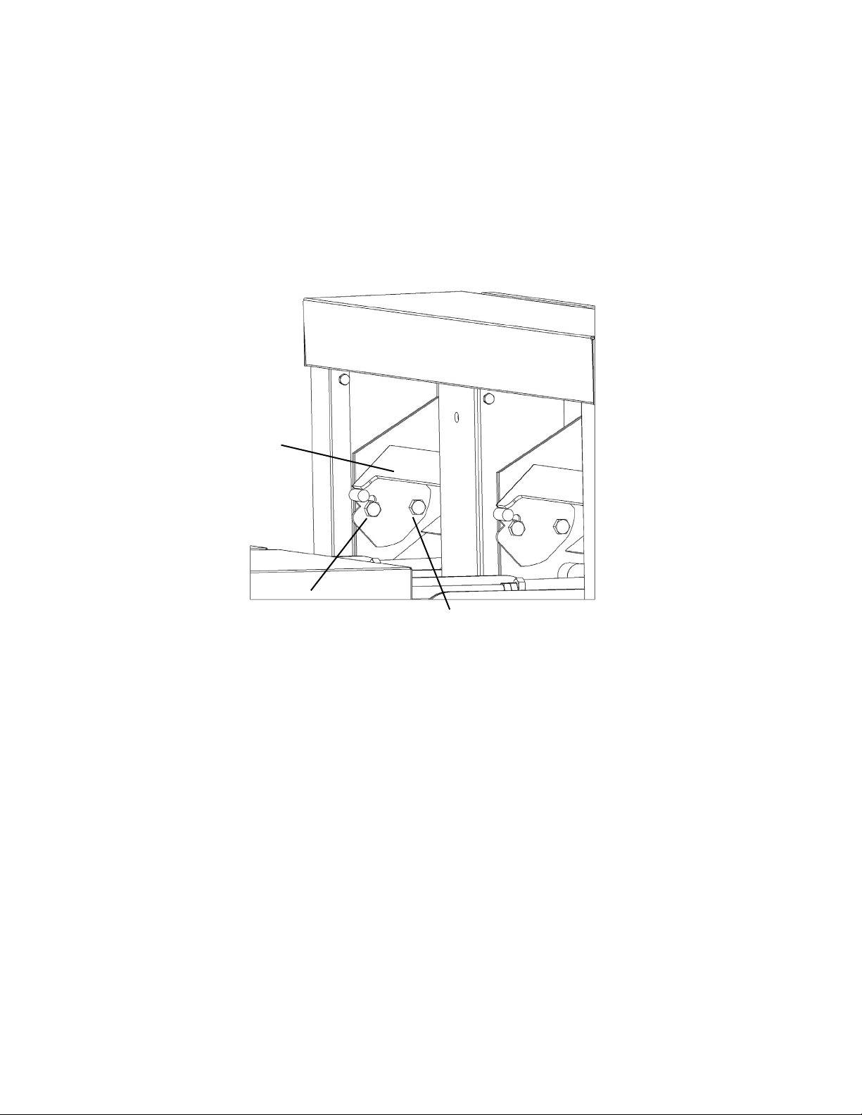 2. Attach the hood stop to the stanchion using two ¼ -20 hex head bolts